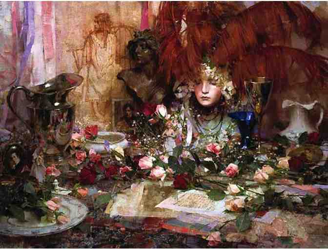 MEMORIES by Richard Schmid, in custom decorative gold frame. This limited edition art print was created by Greenwich Workshop, Inc. one of North America’s leading fine art publishers. Schmid has said "I painted 'Memories' out of pure enjoyment. Still life can be a manner of portrait, as the objects disclose one's personality. In this case, 'Memories' reveals my love for my family and a dear friend."
