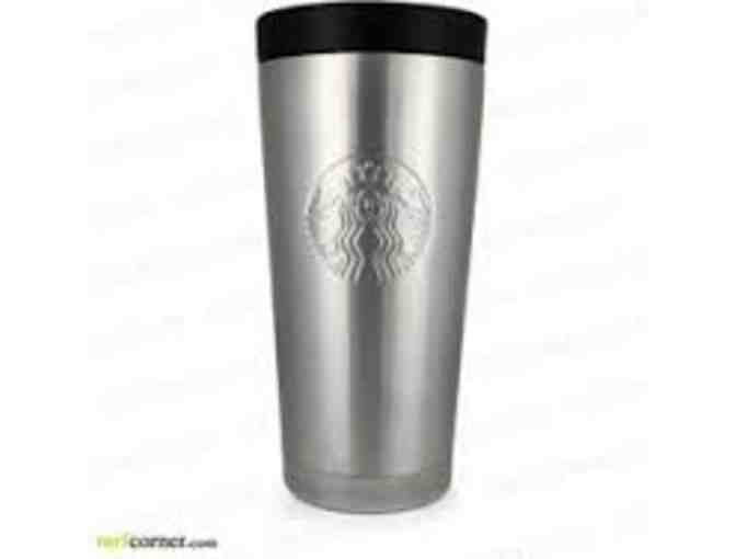 Enjoy a 1b bag of Starbucks' Pike Place Roast coffee and a stainless steel Starbucks 12oz mug.