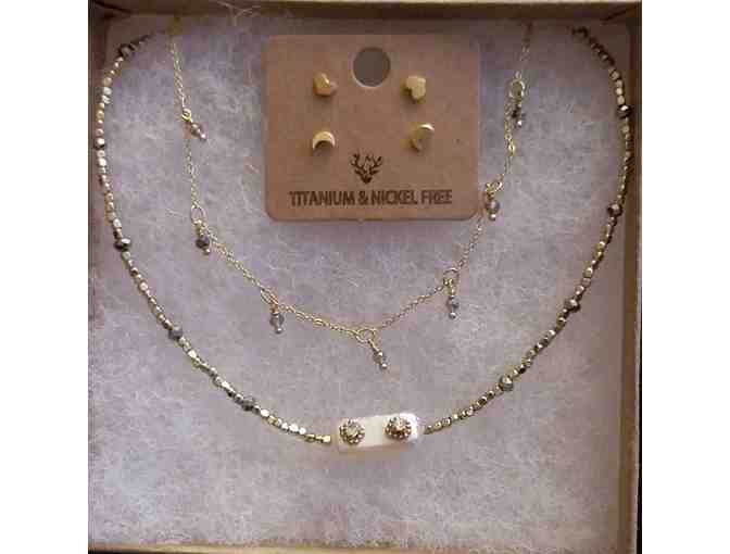 -2 dainty gold necklaces (one with pearl and rhinestone bead)
