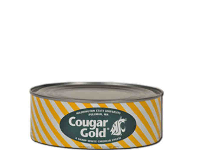 Two 2-pound tins of Cougar Gold Sharp Cheddar Cheese made at Washington State University. If you like sharp cheddar, this is a great one. About the only place you can purchase this cheese is at a "Made in Washington" store or by ordering it from Washington State University. You won't be disappointed in its great flavor! Keep one tin and give the other as a gift, or save them all! The cheese will stay fresh in the unopened tin in the fridge indefinitely.