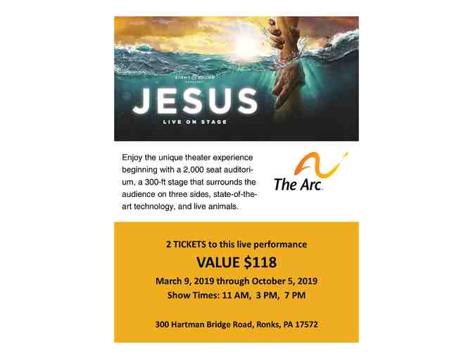 2 Tickets to the show Jesus which runs until Oct 5, 2019.