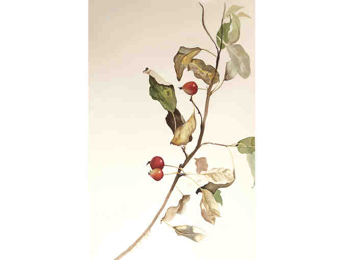 Description:Watercolor on paper. Crabapple branch