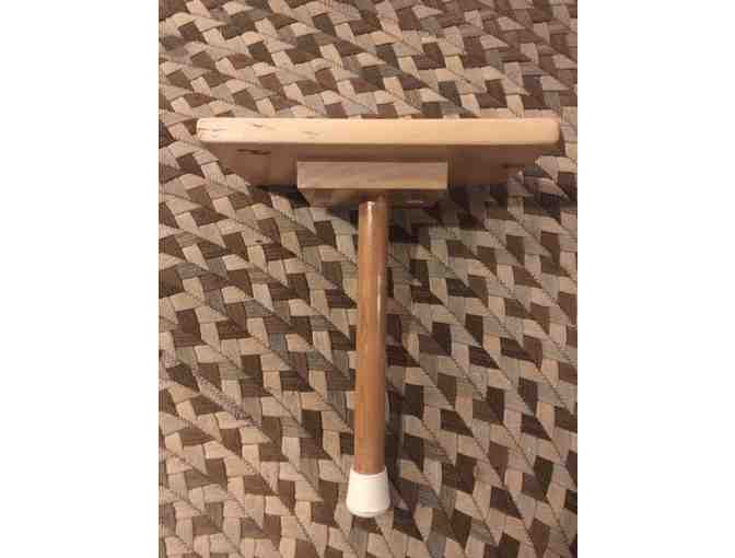 Handmade one-legged stool made at the Fellowship Community in Chestnut Ridge, NY.