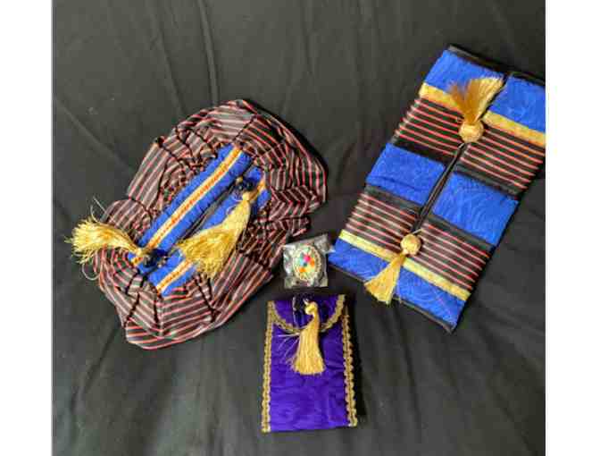 Two Tissue Box holders; Blue. a Cellphone Pouch: Blue. Handmade Necklace: Made in Armenia.
