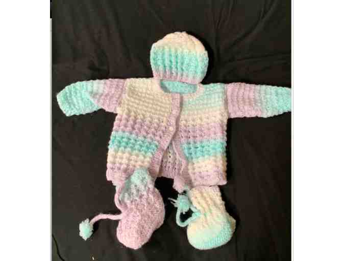 Handmade Baby Jacket, Booties and Hat; Wool.