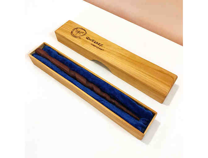 One-of-a-kind purple heartwood wand, with custom-made wooden case, lovingly handcrafted by CLWS founding teacher, Art + Woodworking instructor, and master craftsman Kevin Kane. Wand measures 13 13/16th inches.