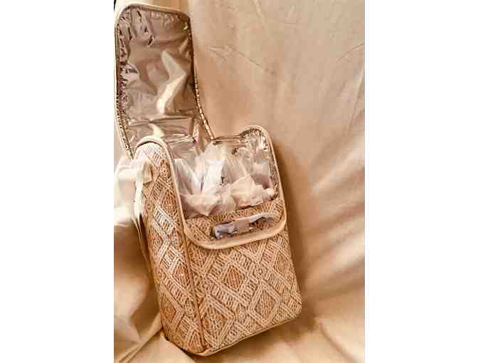 All you need for a fun picnic. Beautiful rattan style insulated carrying case with two bottles of Crooked Path wine, a wine opener, and 2 acrylic tumbler glasses.