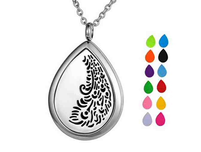 Stainless Steel Teardrop Phoenix Tail Locket Pendant with 12 washable pads.