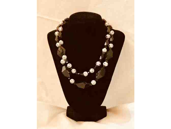 stylish black and white stone necklace. Perfect for dressing up or casual outfits.