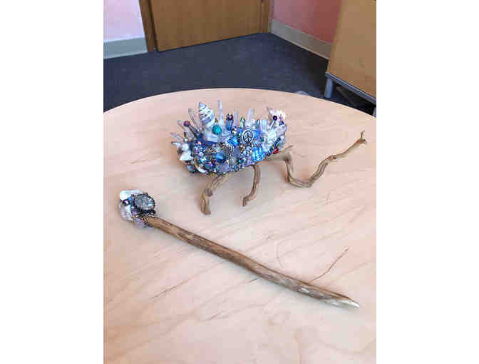 May you feel royal as we prepare to head into the lush beauty of Spring and Summer! Take home a handcrafted, one-of-a-kind Goddess Crown and wand by mosaic artist Jeana Sommers.