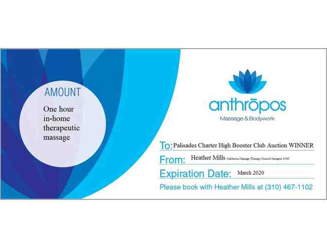 An entire hour of hand-crafted therapeutic massage therapy and bodywork brought to your home or office. Choose from myofascial release, deep tissue, relaxation, pre (or post) natal, or a combination thereof. Heather Mills has been licensed and practicing in Oregon and California for 13 years. She brings everything needed for a massage escape to you in your favorite environment. Her specialty is addressing pain and discomfort in the body without creating pain while giving a treatment.