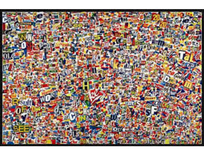 This limitedition print is made from a collage Albert created in 2003. It is a scrabble-like composition comprised of hundreds of famous sayings, or cliches of wisdom that he collected through conversations over a period of several months. The original collage took Albert close to 5 months to create & it's original size is 20" X 30".