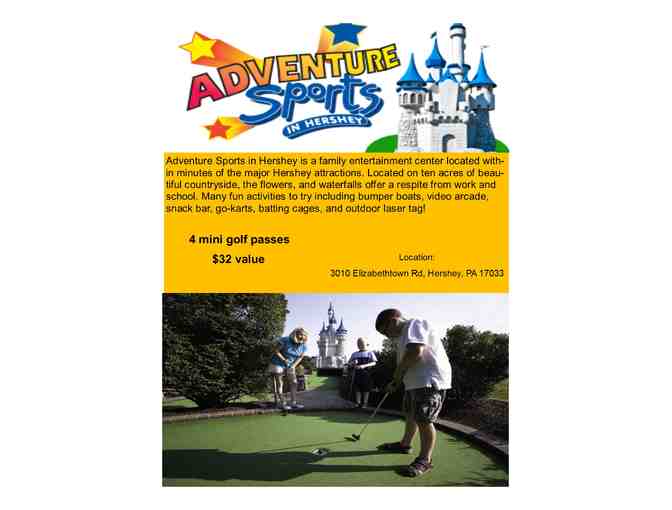 Includes 4 passes for mini golf at Adventure Sports in Hershey.