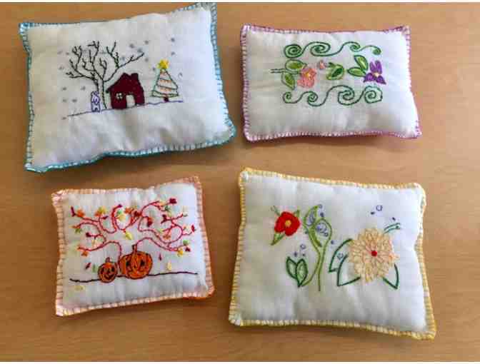 4 Embroidered Pillows Made By Ms. Garland's Fourth Grade Class