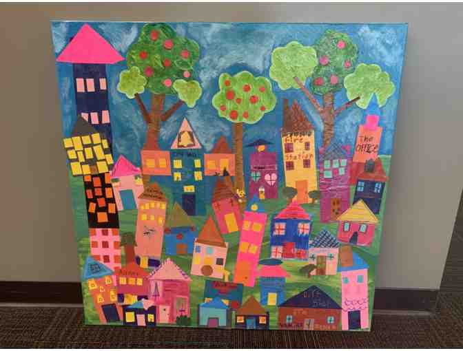 Each student created their piece of this colorful community with the help of Blue Apple Studios.
