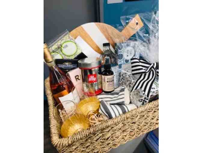This basket is an Amazing gift for that special Mom in your life! It includes 1 bottle of Rose' wine, a Nest Bamboo Luxury candle, tea towels, Cheese/cutting board, bubble bath, Rose' All Day napkins, Ghirardelli chocolate, foot care, Illy coffee, reusable eye mask, pillow spray, gold dipped wine glasses and a photo session from Cole Wilson Photography worth $500!