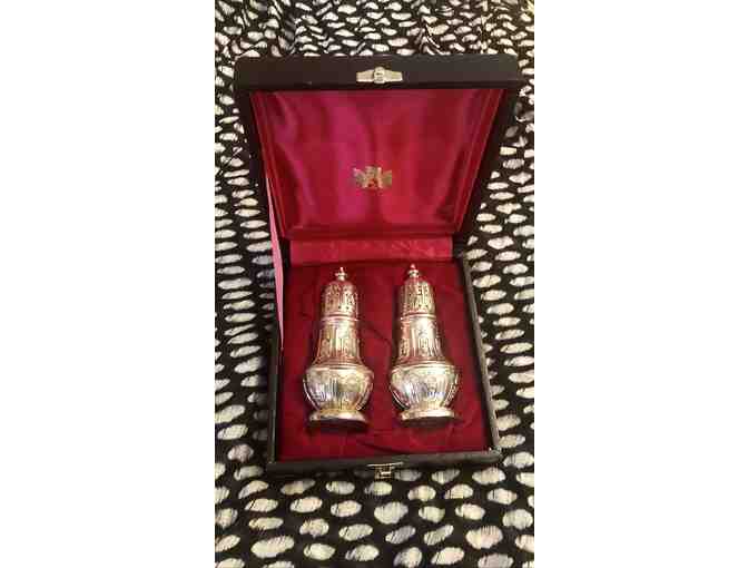 Antiques Silver Plated Salt & Pepper Shakers in keepsake case