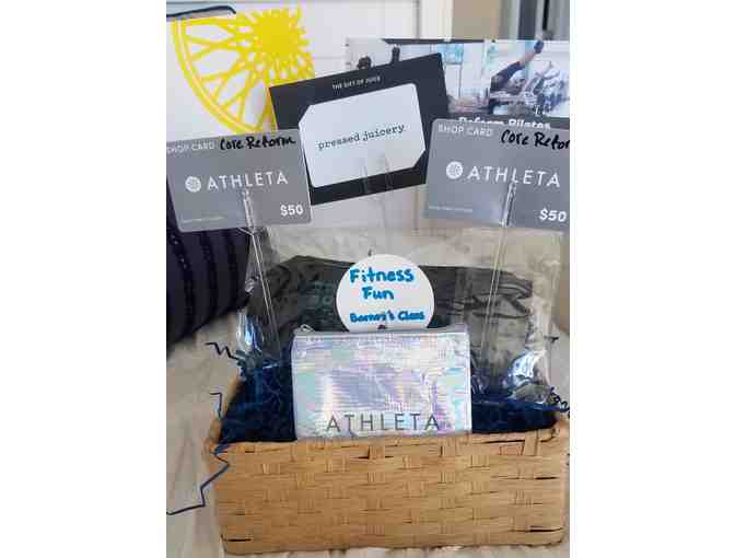 Get up and get moving with Spin and Pilates! 5 spin Classes, SoulCycle. 5 pilates classes, Core Refrom Pilates. (2) $50 Gift cards to Athleta, (1) pair of pilates socks, $25 Gift Card to Pressed Juice.