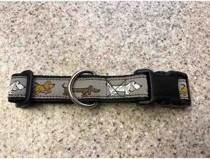 Small dog collar (tan background with doxies, basset hounds and terriers)