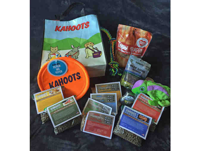 Make your Canine friend happy with this treat bag from Kahoots. Reusable Kahoots Tote Bag includes pet food samples, treats, & toys for Dogs: