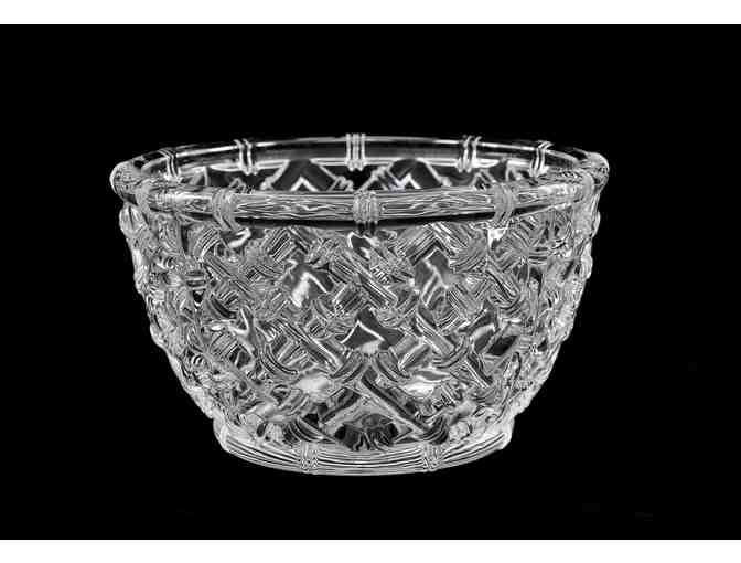 This is a vintage large Tiffany Crystal Bowl with a bamboo cross work pattern.