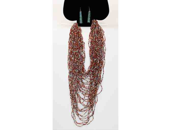 Handmade Multi-Strand Beaded Necklace and Turquoise Bead Earring Set