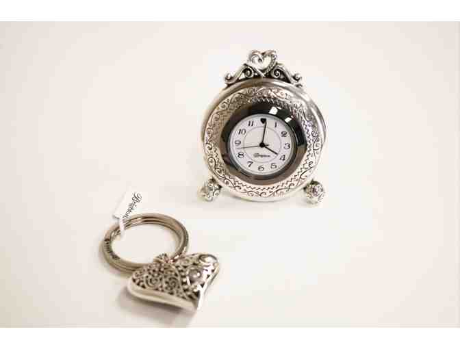 Beautiful silver clock and keychain set.