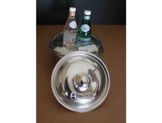 Up for auction is this Pot, Water and $25 Gift Card from Anthony's Coal Fired Pizza. The pot is 9-1/2 inches across and 4-inches high – water is Pellegrino and Acqua Panna.
