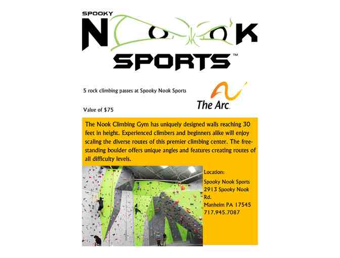 Feeling Adventurous and maybe a little competitive?? Grab your family or friends and enjoy 5 Climbing day passes at Spooky Nook in Manheim!