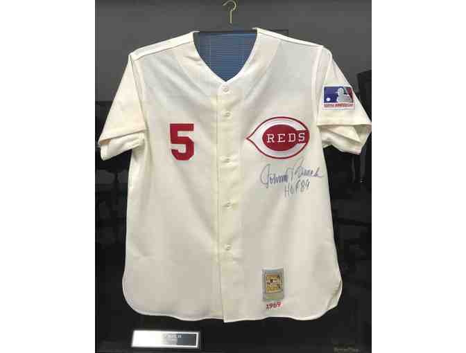 Johnny Bench Reds Hall of Fame 1989 Signed and Framed Jersey.