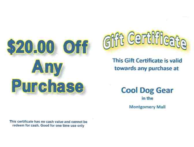 Up for auction is this $20 gift Certificate to Cool Dog Gear.
