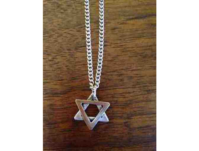 This beautiful sterling silver Star of David necklace makes for a perfect bar mitzvah or bat mitzvah gift. Star of David is 1/2" in width and 1/2" in height. Sterling silver chain is 18" long.
