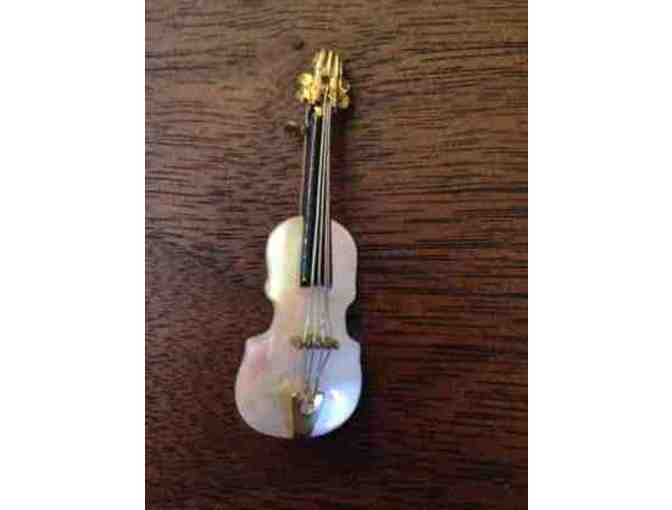 This unique and dainty brooch would make a great gift for the violin player in your life. Would look lovely on a winter coat or any peice of clothing. A subtle way to make a statement.