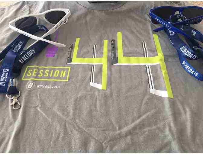 Wristband, two lanyards and two pair sunglasses from the world class drum corp BLUECOATS