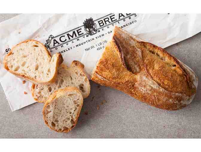 That smell is coming from nearby Acme Baking. Bring that wholesome gorgeousness into your home! A year's supply of bread from Acme Bread Company. This $300 gift certificate will supply you and your family with bread every week from the Berkeley or San Francisco Acme Bread bakeries.