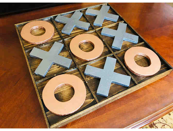 Take home a piece of art crossed with your favorite childhood game! Tic Tac Toe board is handmade and painted with a classic finish to bring style to any picnic or party.