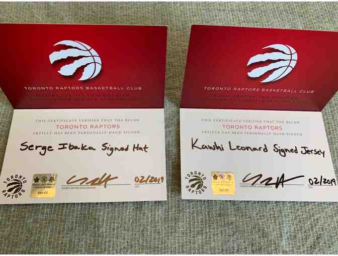 Kawhi Leonard autographed jersey + Ibaka signed hat