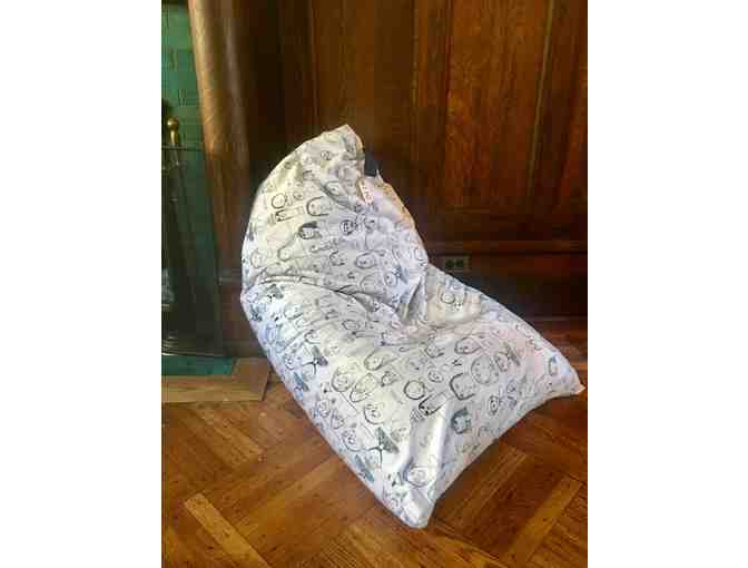Reading is at the core of Lower Lab's learning magic, and first grade marks a time when reading really blossoms. What better way to settle in with the evening's reading than nestled into a one-of-a-kind bean bag, covered in portraits drawn by the cool cats in 1-141! The children created self-portraits which were cut and manipulated by hand into a seamless repeating pattern, then printed on minky fabric by Spoonflower.com. Cover is removable for easy laundering,