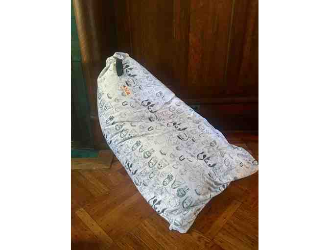 There's no better way to settle in with the evening's reading than nestled into a one-of-a-kind bean bag, covered in portraits drawn by the cool cats in 3-208! The children created self-portraits which were cut and manipulated by hand into a seamless repeating pattern, then printed on minky fabric by Spoonflower.com. Cover is removable for easy laundering,