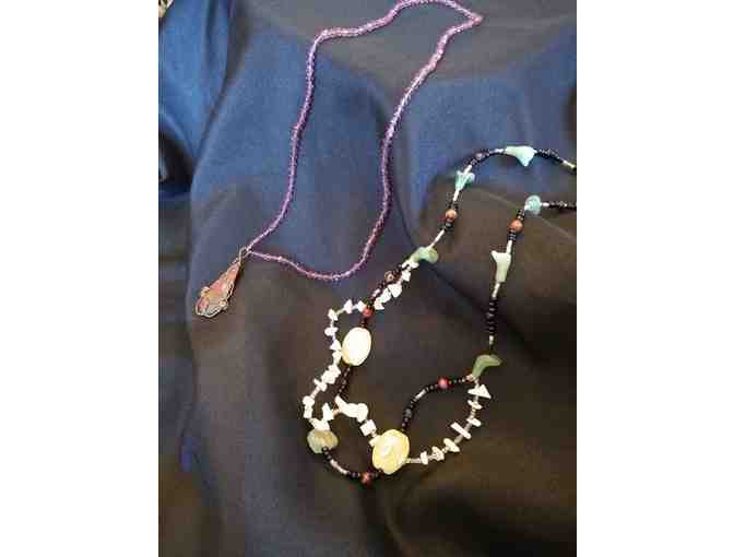 These two hand strung beautiful necklaces feature a variety of beads. Bid now to own this guaranteed conversation starter!