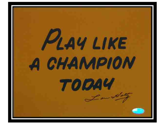 Lou Holtz signed Famous Notre Dame Sign "Play Like a Champion Today!"