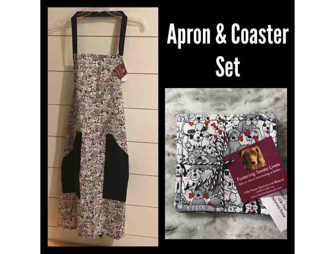 Adorable Handmade Dog Lover Theme Apron and Set of 4 Fabric Coasters