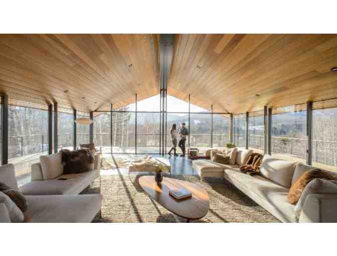 This stunning stunning five bedroom, four bath house sleeps 12. The Stowe Glass House is a five thousand square foot modern home with walls of glass facing the Mt. Mansfield ski slopes, complete with sauna, outdoor pool, radiant heat floors, three wood burning fireplaces, and sleeping accommodations for twelve. This private home is conveniently located off the Mountain Road just a mile to the ski slopes and five miles into Stowe village.