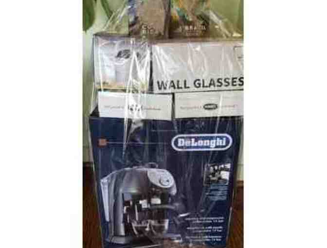 De'Longhi Espresso Machine Sweese Espresso Glasses set of 2 Krups Electric Grinder Stainless Steel Frothing Pitcher 2 Starbucks Whole Bean Coffee Nonni's Original Biscotti Nonni's Toffee Almond Biscotti