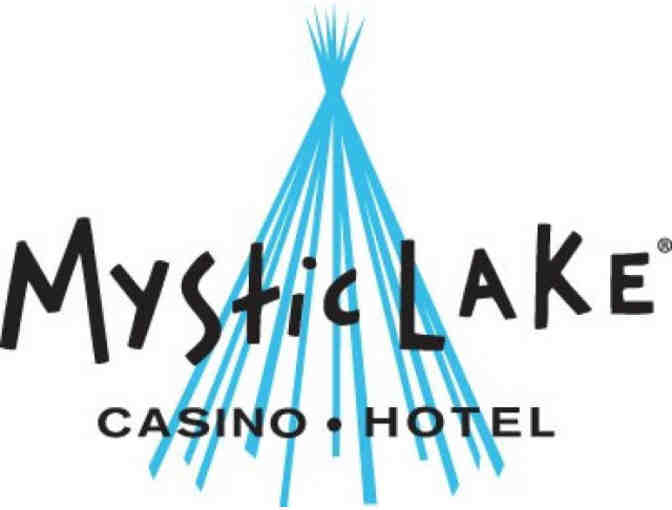 Enjoy a one night stay, double occupancy, at the Mystic Lake Casino Hotel. While at the casino, enjoy a gift certificate good for $50 to the Mystic Steakhouse!