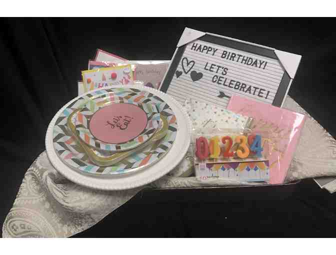 Everything you need for that special Birthday! Tray, Table Runner, Cake Stand, Cafe Letter Board, Paper Plates, Napkins, Birthday Cards, and Number & Letter Candles!