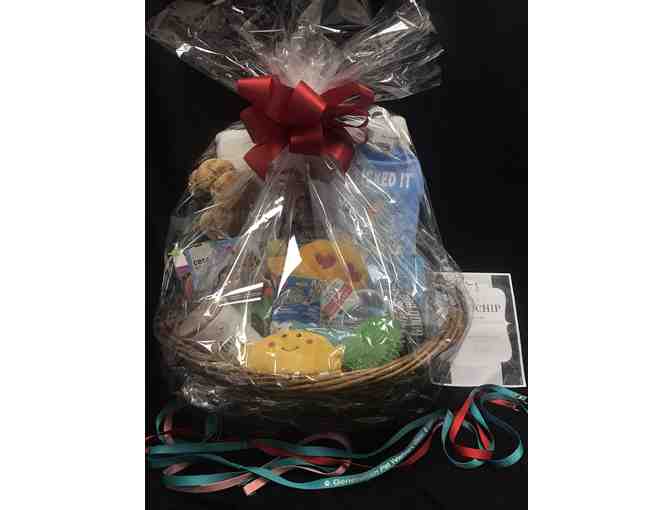 Everything You Need to Welcome Your Puppy Home! Toys, Retractable Dog Leash, More Toys, Bags of Doggie Treats, Fling A ring, Ceramic Treat Jar, Doggie Bowl, Fashion Outfit, Crate Bed and Gift Certificate to have your puppy chipped!