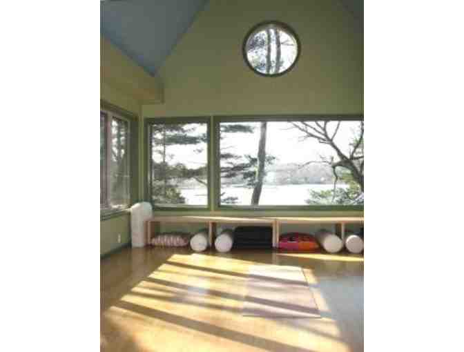 Feel your stress melt away when you enter this beautiful yoga studio with its floor to ceiling windows and views of Morses Pond. Certificate for a 5-Class Drop In Pass....Ahhhhhhh!