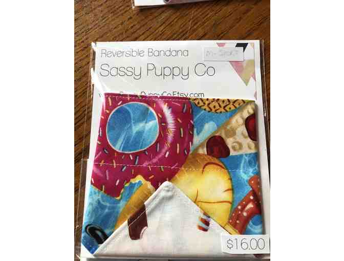 All Sassy Puppy Co. items are handmade. Over the collar bandanas are not intended to wrap all the way around your pets neck. They should cover 50% to 75% of your pets collar length for a proper fit.