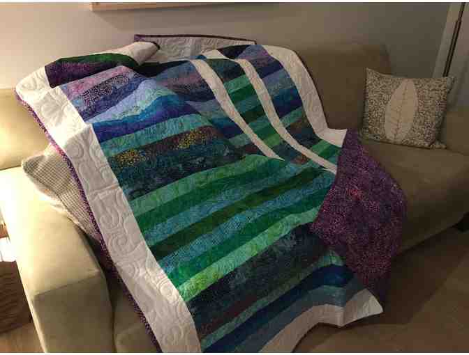 This beautiful multicolored quilt was handmade by Eileen Keenan, grandmother to Starlings student, Leon Keenan-Seeley! Entitled "Summer Beach" for its many shades of blue, green, and violet, this 54" x 72" quilt will make a lovely addition to your home.